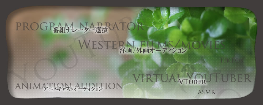 案件例としましては、当スタジオ音響担当がノイズ等のチェック審査員として審査に参加し、タイムスケジュールの管理等はスタジオ側が行う。 またオーディションに参加したい役者、声優、事務所様等のキャスティングなど(案件の予算に合わせたキャスティングが可能)